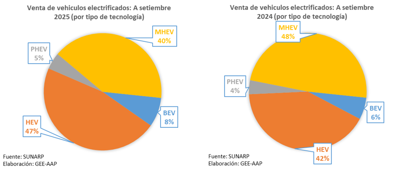 No obstante, advirtió que a pesar del crecimiento registrado, la penetración de este tipo de vehículos en el mercado nacional sigue siendo limitada. Actualmente, los vehículos electrificados representan apenas el 4.7% del total de ventas en nuestro país. Esta cifra contrasta con el caso de Colombia y Ecuador, por ejemplo, donde entre enero y setiembre de 2025 se alcanzó una participación de 33.5%, con 58,583 unidades comercializadas, y 17.8% con 15,758 unidades vendidas; respectivamente. “Esta diferencia responde, en gran medida, al respaldo que el Estado ha brindado a la electromovilidad, mediante políticas públicas orientadas a acelerar la transición energética del parque automotor. Entre las medidas adoptadas destacan los incentivos tributarios y otras facilidades que han promovido el acceso a tecnologías limpias”.