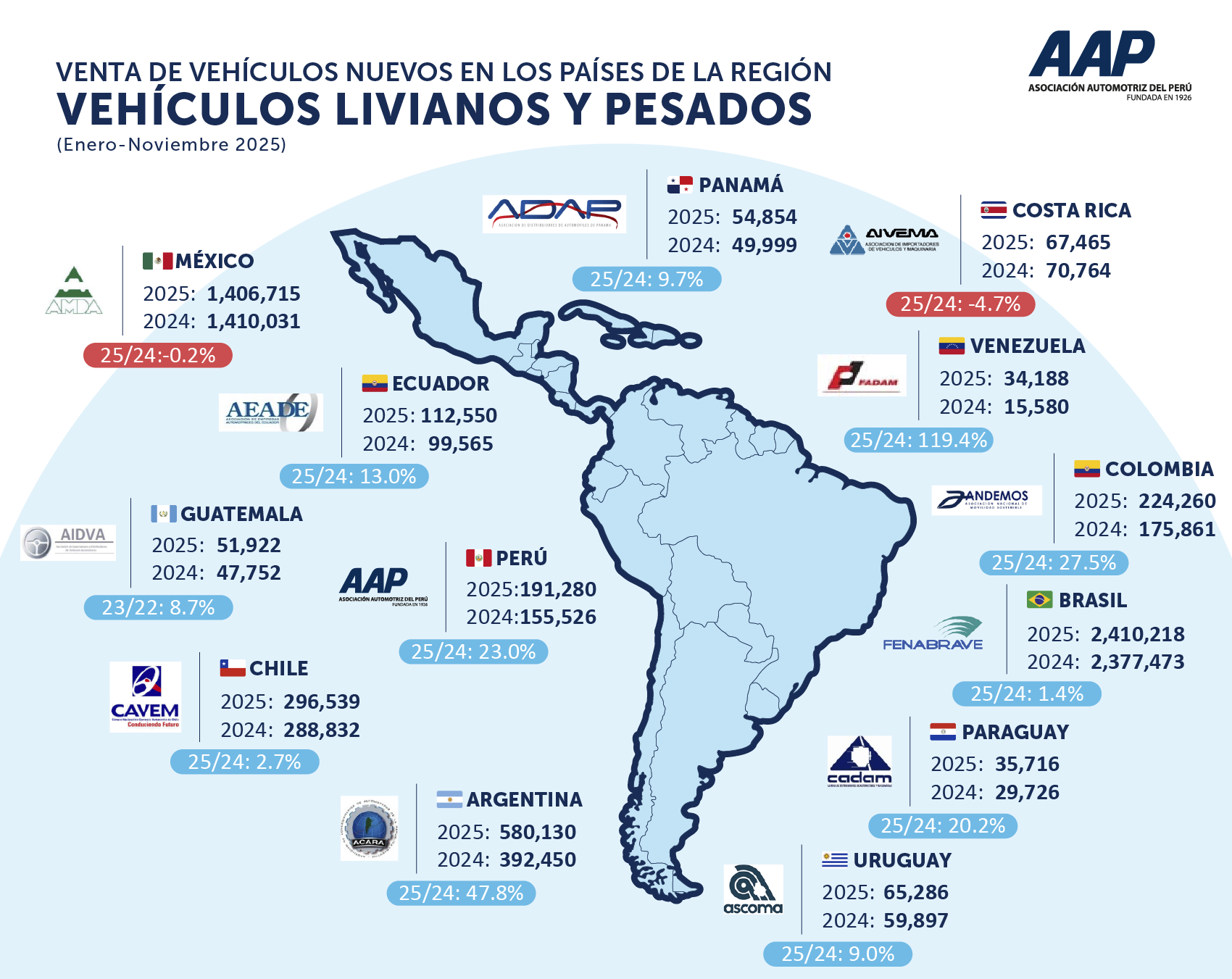 Venta de Vehículos Nuevos por Países - 2025 | Asociación Automotriz del Perú