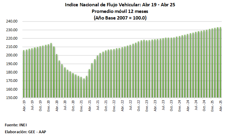 La Asociación Automotriz del Perú (AAP) informó que la circulación de vehículos en el país volvió a registrar un crecimiento en abril de 2025, tanto en comparación interanual como en términos acumulados, según datos oficiales del INEI.