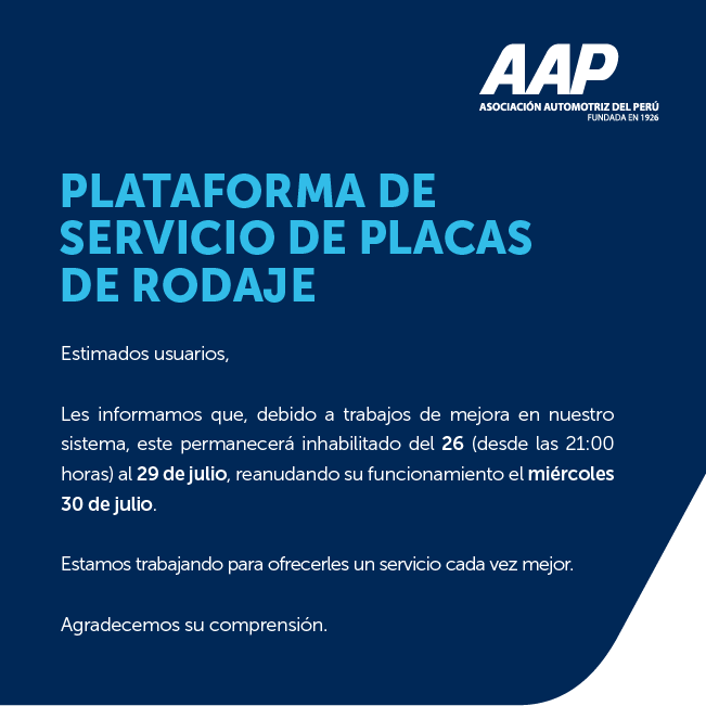 La AAP desde el 01 de enero del 2010 es la entidad encargada de la Administración del Nuevo Sistema de Placa Única Nacional de Rodaje, encargo recibido del Ministerio de Transporte y Comunicaciones MTC; Este nuevo sistema ha incorporado altos estándares de seguridad para evitar la falsificación, adulteración, destrucción o empleo indebido de las placas de rodaje.