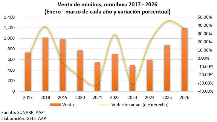 De acuerdo con la AAP, este resultado responde a una combinación de factores por el lado de la oferta y de la demanda. “Las concesionarias mantuvieron una estrategia comercial activa, caracterizada por el despliegue de campañas promocionales, la ampliación de la oferta disponible y la introducción de nuevos modelos a precios competitivos”, indicó. Añadió que este desempeño se dio en un contexto en el que, pese al reciente repunte del tipo de cambio, los precios de los vehículos no han registrado incrementos significativos. Incluso, a marzo de 2026, y según el Índice de Precios al Consumidor del INEI, los precios promedio de los vehículos se ubicaron 7.3% por debajo de los niveles observados un año atrás.